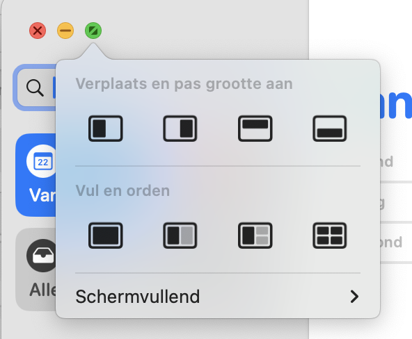 Een andere manier is gebruik te maken van Command (⌘) + Spatie (␣) en daarna in het Spotlight venster de letter ‘h’ te typen om Herinneringen op te roepen. Je moet dan alleen nog je Herinneringen venster (eenmalig) goed zetten. Dat kan eenvoudig met deze knop: