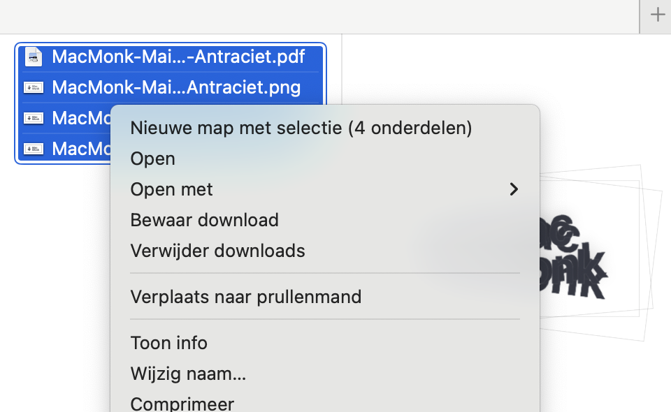 Op het moment dat je meerdere bestanden hebt geselecteerd en een rechtermuisklik doet (of Control (⌃) + klik), verschijnt er in het contextuele menu de optie die heet Wijzig naam ….