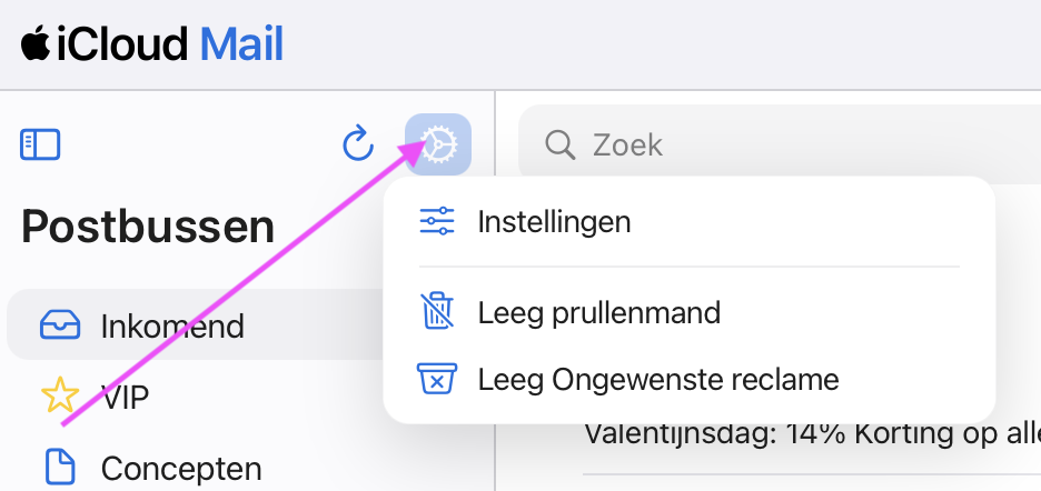en de e-mail zit in de Prullenmand.