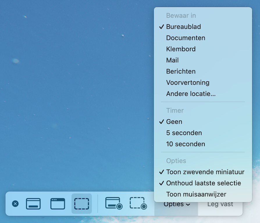 Als je een schermafbeelding wil maken en direct daarna plakken dan gebruik je een complexere sneltoets combinatie die een beetje nadenken en oefenen vraagt. Je voegt de Control (⌃) toets toe aan de reeks dus: